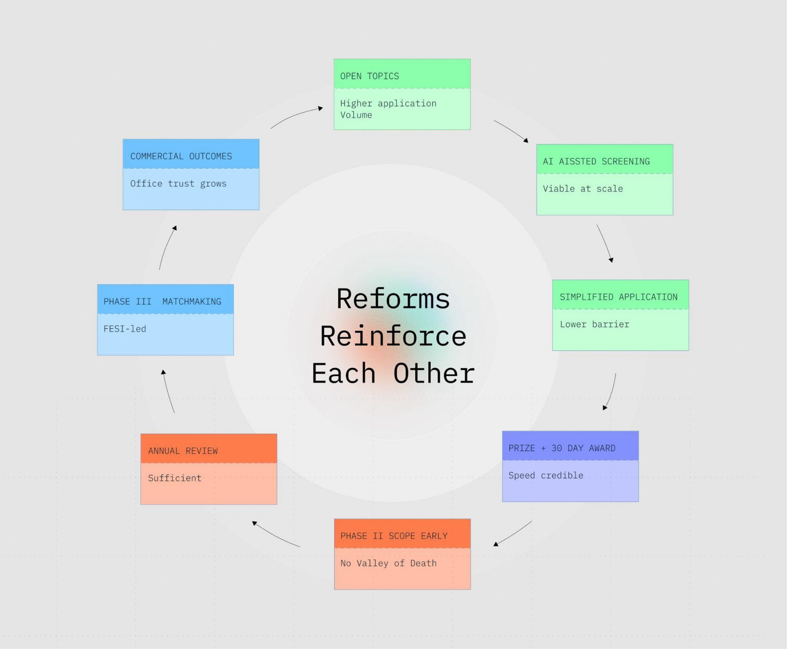 Fixing this requires starting somewhere. And for energy startups, the logical first lever is the program they encounter before any other: the Small Business Innovation Research (SBIR) program. It’s the entry point to DOE’s innovation ecosystem, which means its dysfunction compounds everything that follows. Reforms that make SBIR work better don’t just help early-stage companies clear the first hurdle; they improve the conditions under which the rest of DOE’s programs become accessible at all. That’s why CleanEcon’s first Blueprint is a complete, implementable redesign of DOE’s SBIR program.